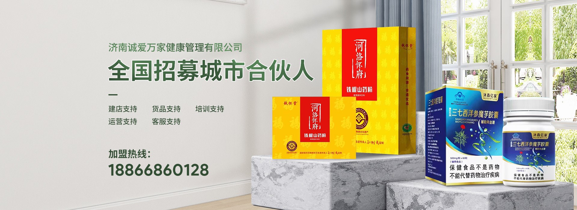 濟南誠愛萬家健康管理有限公司入駐泉城12年,是一家以輕養食品、保健食品、營養素補充劑、醫療器械為核心的民營企業,旗下擁有5家連鎖店,服務網絡遍及濟南各大商超,得到兩萬多新老客戶的支持和信賴。